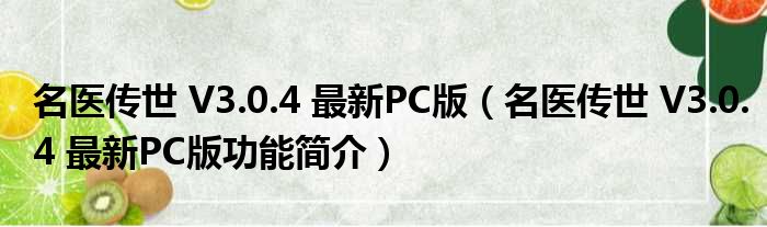 导读 大家好,关于名医传世 V3 0 4 最新PC版,名医传世 V3 0 4 最新PC版功能简介这个很多人还不知道,小勒来为大家解答以上的问题,现在让我们