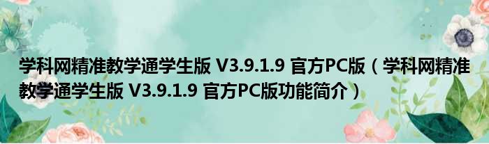 导读 大家好,关于学科网精准教学通学生版 V3 9 1 9 官方PC版,学科网精准教学通学生版 V3 9 1 9 官方PC版功能简介这个很多人还不知道,小勒来