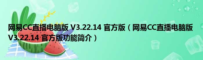 网易CC直播电脑版 V3.22.14 官方版(网易CC直播电脑版 V3.22.14 官方版功能简介)