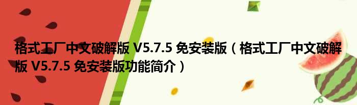 格式工厂中文破解版 V5.7.5 免安装版(格式工厂中文破解版 V5.7.5 免安装版功能简介)