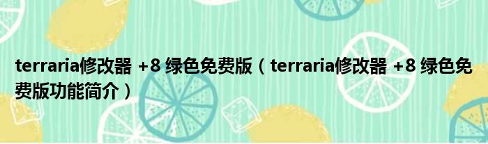 terraria修改器 +8 绿色免费版(terraria修改器 +8 绿色免费版功能简介)