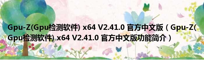 Gpu-Z(Gpu检测软件) x64 V2.41.0 官方中文版(Gpu-Z(Gpu检测软件) x64 V2.41.0 官方中文版功能简介)