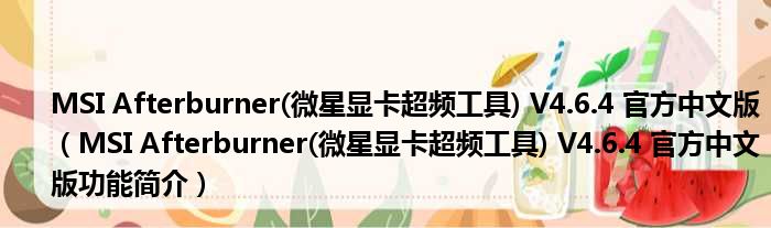 MSI Afterburner(微星显卡超频工具) V4.6.4 官方中文版(MSI Afterburner(微星显卡超频工具) V4.6.4 官方中文版功能简介)