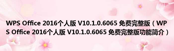 WPS Office 2016个人版 V10.1.0.6065 免费完整版(WPS Office 2016个人版 V10.1.0.6065 免费完整版功能简介)