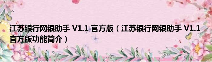 江苏银行网银助手 V1.1 官方版(江苏银行网银助手 V1.1 官方版功能简介)