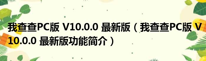 我查查PC版 V10.0.0 最新版(我查查PC版 V10.0.0 最新版功能简介)