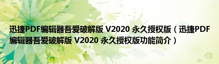 迅捷PDF编辑器吾爱破解版 V2020 永久授权版(迅捷PDF编辑器吾爱破解版 V2020 永久授权版功能简介)