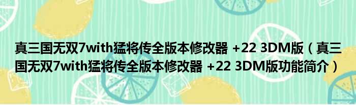 真三国无双7with猛将传全版本修改器 +22 3DM版(真三国无双7with猛将传全版本修改器 +22 3DM版功能简介)