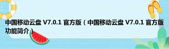 中国移动云盘 V7.0.1 官方版(中国移动云盘 V7.0.1 官方版功能简介)