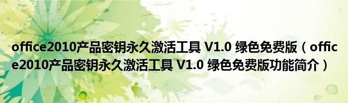 office2010产品密钥永久激活工具 V1.0 绿色免费版(office2010产品密钥永久激活工具 V1.0 绿色免费版功能简介)