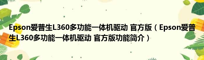 导读 大家好,关于Epson爱普生L360多功能一体机驱动 官方版,Epson爱普生L360多功能一体机驱动 官方版功能简介这个很多人还不知道,小勒来为大家