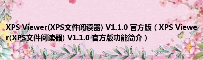 XPS Viewer(XPS文件阅读器) V1.1.0 官方版(XPS Viewer(XPS文件阅读器) V1.1.0 官方版功能简介)