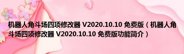 机器人角斗场四项修改器 V2020.10.10 免费版(机器人角斗场四项修改器 V2020.10.10 免费版功能简介)