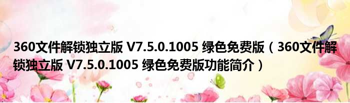 360文件解锁独立版 V7.5.0.1005 绿色免费版(360文件解锁独立版 V7.5.0.1005 绿色免费版功能简介)