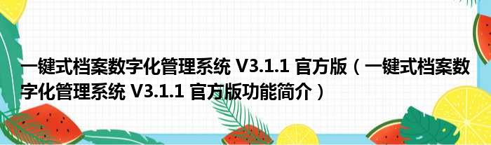 一键式档案数字化管理系统 V3.1.1 官方版(一键式档案数字化管理系统 V3.1.1 官方版功能简介)