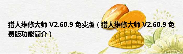 猎人维修大师 V2.60.9 免费版(猎人维修大师 V2.60.9 免费版功能简介)
