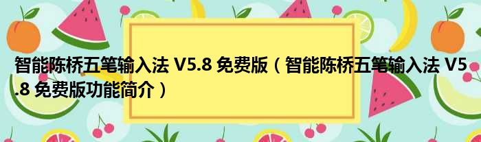 智能陈桥五笔输入法 V5.8 免费版(智能陈桥五笔输入法 V5.8 免费版功能简介)