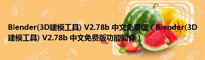 Blender(3D建模工具) V2.78b 中文免费版(Blender(3D建模工具) V2.78b 中文免费版功能简介)