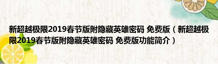 新超越极限2019春节版附隐藏英雄密码 免费版(新超越极限2019春节版附隐藏英雄密码 免费版功能简介)