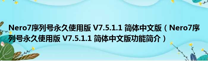 Nero7序列号永久使用版 V7.5.1.1 简体中文版(Nero7序列号永久使用版 V7.5.1.1 简体中文版功能简介)