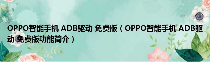 OPPO智能手机 ADB驱动 免费版(OPPO智能手机 ADB驱动 免费版功能简介)