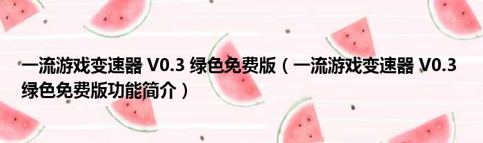 一流游戏变速器 V0.3 绿色免费版(一流游戏变速器 V0.3 绿色免费版功能简介)