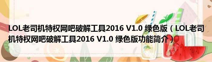 LOL老司机特权网吧破解工具2016 V1.0 绿色版(LOL老司机特权网吧破解工具2016 V1.0 绿色版功能简介)