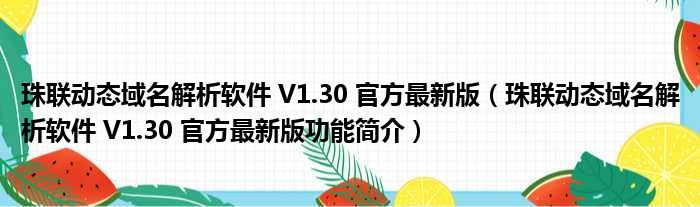 导读 大家好,关于珠联动态域名解析软件 V1 30 官方最新版,珠联动态域名解析软件 V1 30 官方最新版功能简介这个很多人还不知道,小勒来为大家