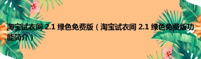 导读 大家好,关于淘宝试衣间 2 1 绿色免费版,淘宝试衣间 2 1 绿色免费版功能简介这个很多人还不知道,小勒来为大家解答以上的问题,现在让我