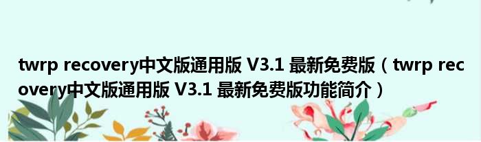 twrp recovery中文版通用版 V3.1 最新免费版(twrp recovery中文版通用版 V3.1 最新免费版功能简介)