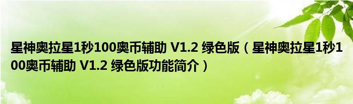 星神奥拉星1秒100奥币辅助 V1.2 绿色版(星神奥拉星1秒100奥币辅助 V1.2 绿色版功能简介)