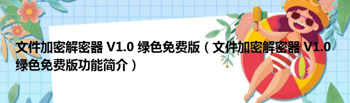 文件加密解密器 V1.0 绿色免费版(文件加密解密器 V1.0 绿色免费版功能简介)