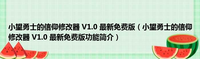 大家好,关于小望勇士的信仰修改器 V1.0 最新免费版,小望勇士的信仰修改器 V1.0 最新免费版功能简介这个很多人还不知道,小勒来为大家解答以上的问题,现在让我们一起来看看吧!