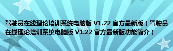 大家好,关于驾驶员在线理论培训系统电脑版 V1.22 官方最新版,驾驶员在线理论培训系统电脑版 V1.22 官方最新版功能简介这个很多人还不知道,小勒来为大家解答以上的问题,现在让我们一起来看看吧!