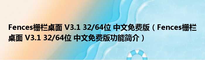 导读 大家好,关于Fences栅栏桌面 V3 1 32 64位 中文免费版,Fences栅栏桌面 V3 1 32 64位 中文免费版功能简介这个很多人还不知道,小勒来为