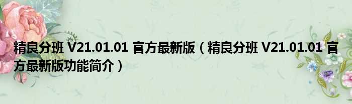 精良分班 V21.01.01 官方最新版(精良分班 V21.01.01 官方最新版功能简介)