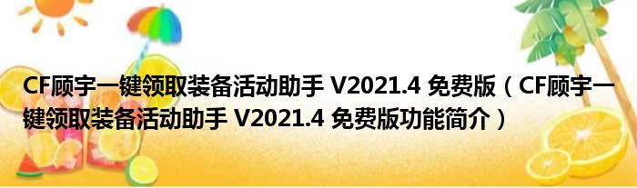 CF顾宇一键领取装备活动助手 V2021.4 免费版(CF顾宇一键领取装备活动助手 V2021.4 免费版功能简介)