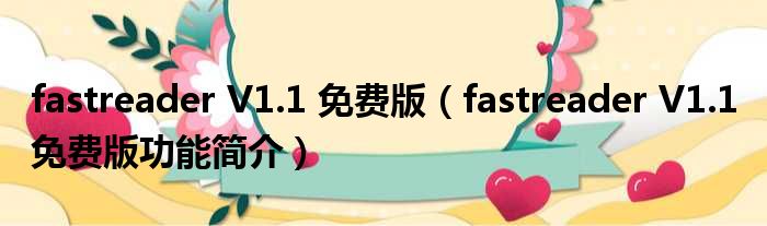 fastreader V1.1 免费版(fastreader V1.1 免费版功能简介)