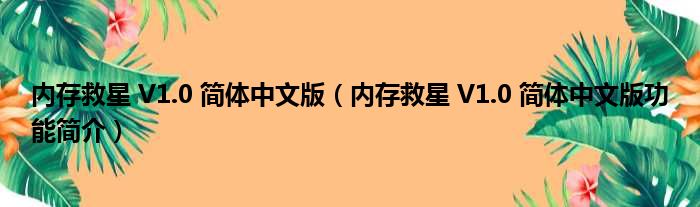 内存救星 V1.0 简体中文版(内存救星 V1.0 简体中文版功能简介)
