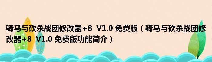 骑马与砍杀战团修改器+8 V1.0 免费版(骑马与砍杀战团修改器+8 V1.0 免费版功能简介)