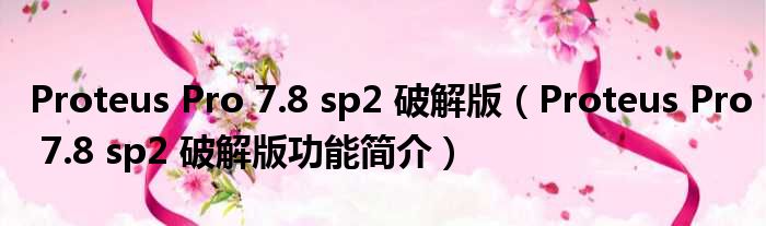 Proteus Pro 7.8 sp2 破解版(Proteus Pro 7.8 sp2 破解版功能简介)