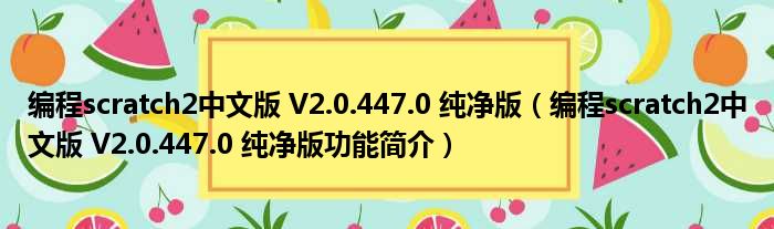 大家好,关于编程scratch2中文版 V2.0.447.0 纯净版,编程scratch2中文版 V2.0.447.0 纯净版功能简介这个很多人还不知道,小勒来为大家解答以上的问题,现在让我们一起来看看吧!
