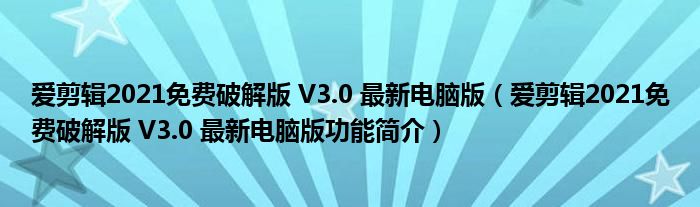 爱剪辑2021免费破解版 V3.0 最新电脑版(爱剪辑2021免费破解版 V3.0 最新电脑版功能简介)