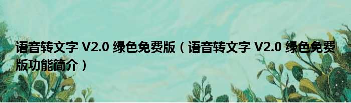 语音转文字 V2.0 绿色免费版(语音转文字 V2.0 绿色免费版功能简介)