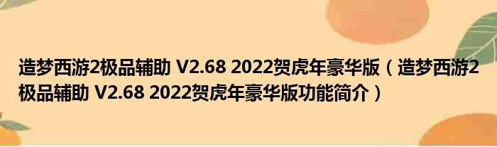 造梦西游2极品辅助 V2.68 2022贺虎年豪华版(造梦西游2极品辅助 V2.68 2022贺虎年豪华版功能简介)