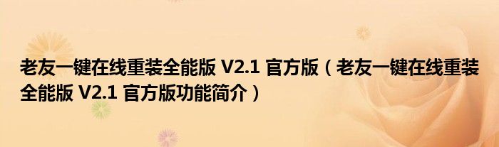 老友一键在线重装全能版 V2.1 官方版(老友一键在线重装全能版 V2.1 官方版功能简介)