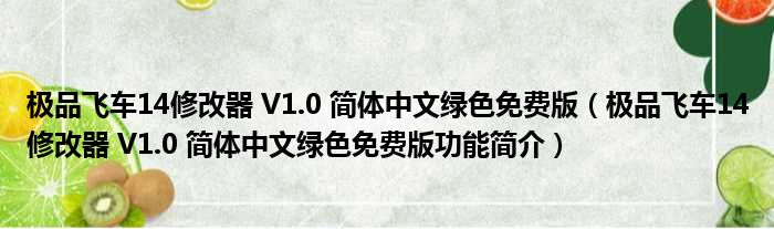 极品飞车14修改器 V1.0 简体中文绿色免费版(极品飞车14修改器 V1.0 简体中文绿色免费版功能简介)