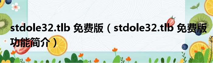 stdole32.tlb 免费版(stdole32.tlb 免费版功能简介)