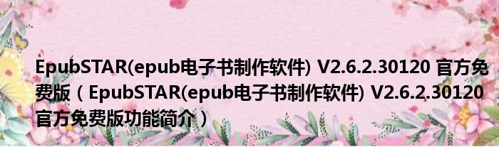 导读 大家好,关于EpubSTAR(epub电子书制作软件) V2 6 2 30120 官方免费版,EpubSTAR(epub电子书制作软件) V2 6 2 30120 官方免费版功能简介