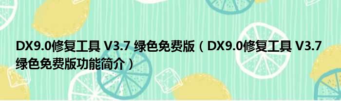 DX9.0修复工具 V3.7 绿色免费版(DX9.0修复工具 V3.7 绿色免费版功能简介)
